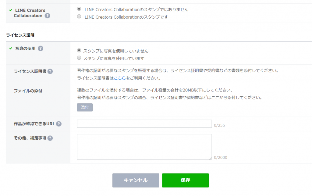 表示情報の入力が終わったら、スタンプ画像のアップロードです。