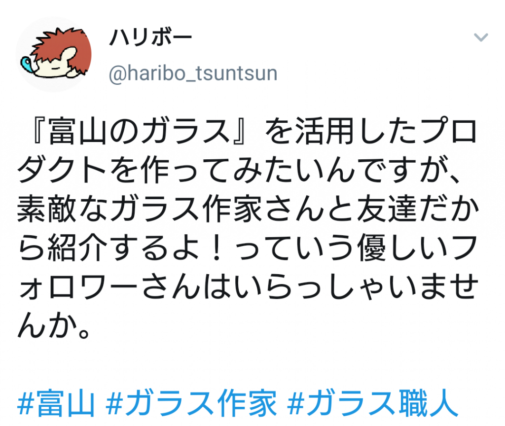 続いて私が行ったのは、Twitterで個人的に協力してくれるガラス作家さんを探すことです。
