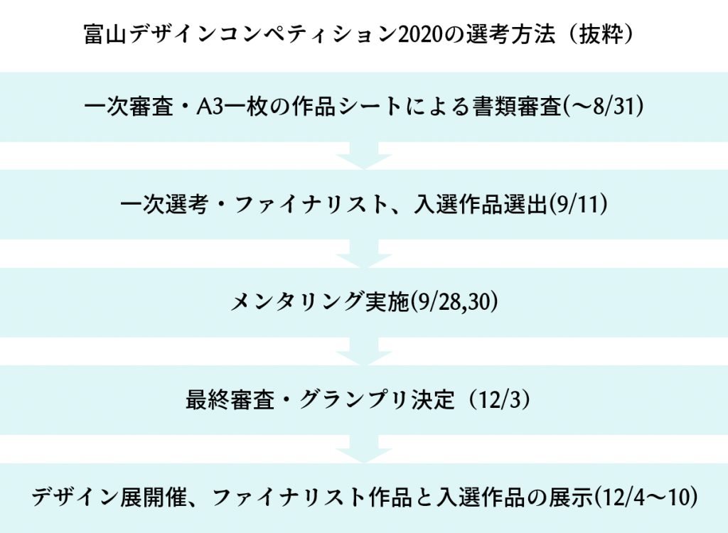 以下、富山デザインコンペティション2020の選考方法を私が抜粋したものです。