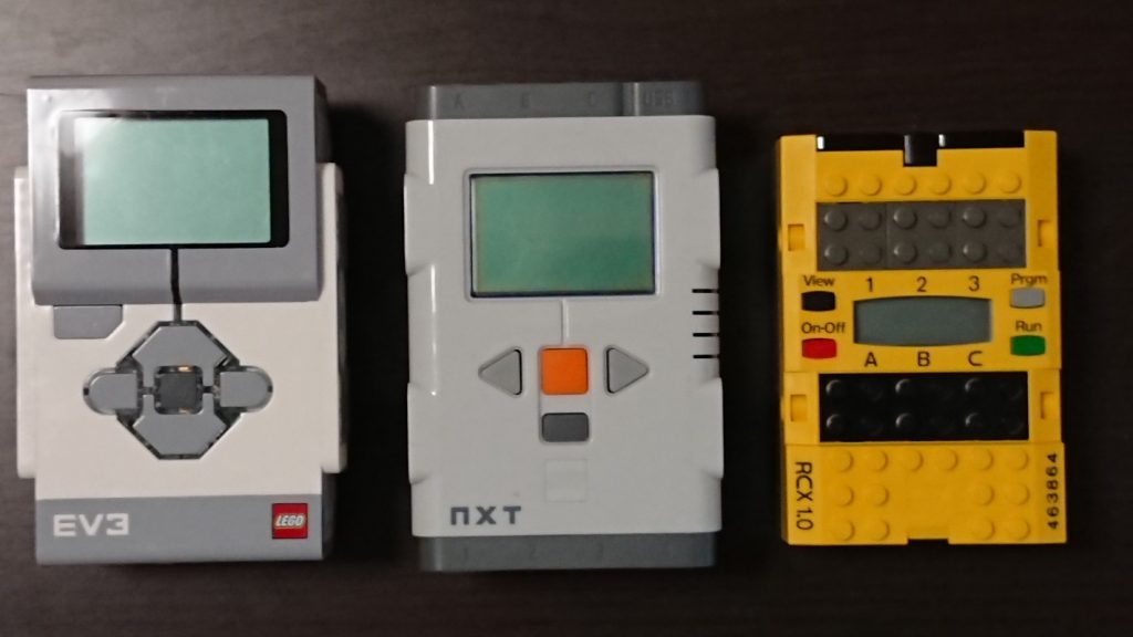 最新版のEV3、ひとつ前のNXT、一番古いRCXの3種類です。