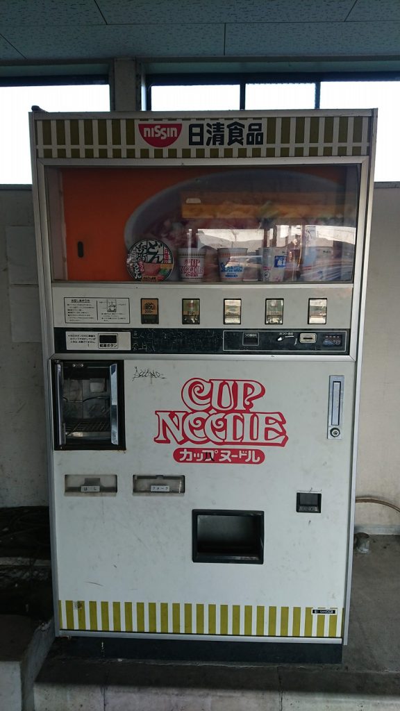 屋内2つの廃自販機のうち、1台はカップヌードルの自販機でした。