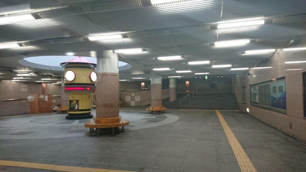 この地下通路、ちょっと前までものすごい人通りだったのですが、南北仮通路の開通によって非常に閑散としています。