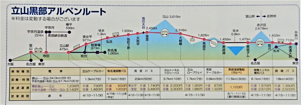 こちらはパンフレットにあったアルペンルート全体の概略図です。